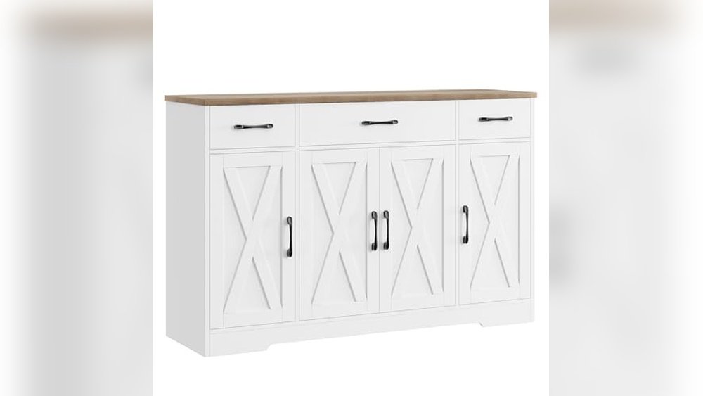 This BOTLOG buffet cabinet stands out as the Best Buffet Cabinet for Dining Room use, offering spacious and versatile storage with a charming farmhouse design.
