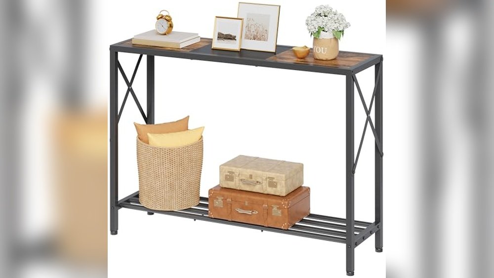 The Tajsoon 2-Tier Industrial Console Table is designed to maximize storage in narrow spaces like hallways and entryways. Measuring 41.8 inches long and only 11.5 inches wide, it fits easily in tight spots while providing two shelves for organizing books, decorations, or essentials.