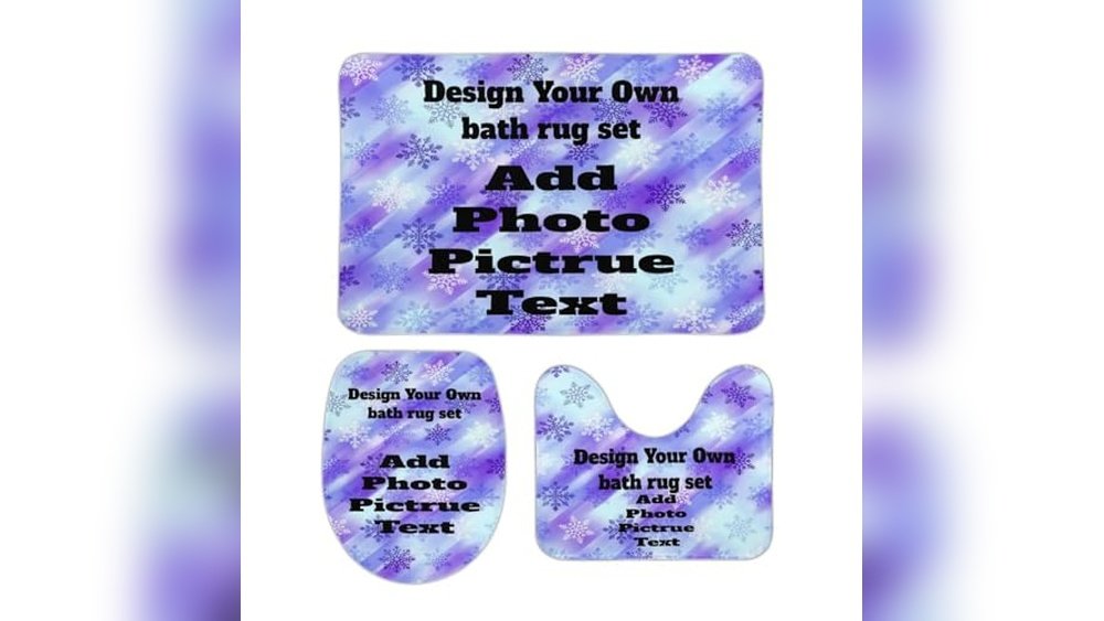 This personalized bathroom rug set includes a rectangular floor mat, a U-shaped mat for the toilet base, and an O-shaped lid cover, all crafted from ultra-soft coral fleece. It solves the problem of finding bathroom rugs that fit perfectly and reflect your personal style by allowing you to add your own photos, images, or text.