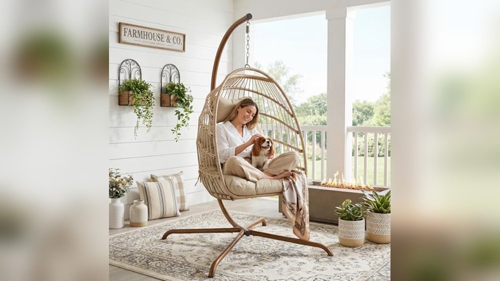This hanging egg chair is ideal for anyone with limited space who still wants a stylish and comfortable swing chair to relax in. It removes the guesswork of stability and weather resistance thanks to its solid iron frame and PE wicker materials. A quick tip is to ensure you have enough clearance for the 360° rotation feature to fully enjoy the chair’s flexibility.