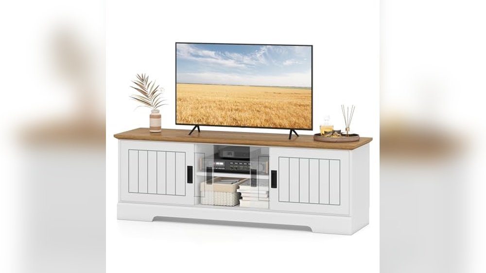 Next, you’ll find a selection of farmhouse TV stands that balance these factors in different ways. Each one fits various needs and preferences, making it easier to find a good match for your home.