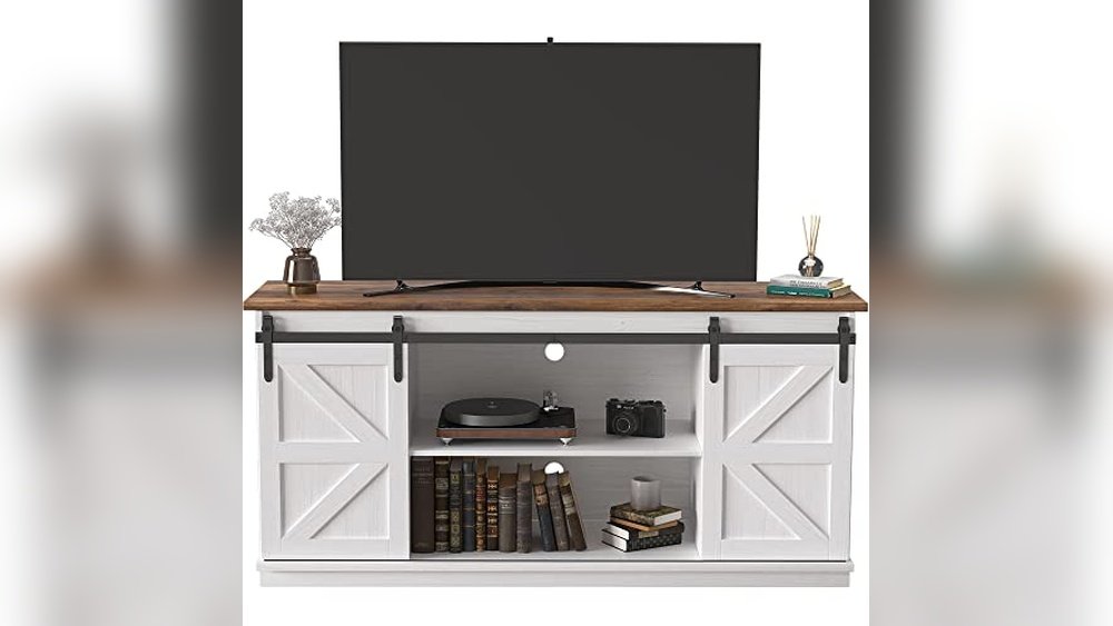 The Best Farmhouse Tv Stand option for those seeking sturdy, customizable storage with charming sliding barn doors.