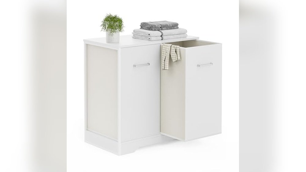This cabinet is ideal for anyone needing a tidy, space-saving solution to laundry sorting in smaller rooms like bathrooms or kitchens. It removes the guesswork of organizing dirty clothes by providing two separate baskets and hidden storage for cleaning supplies.