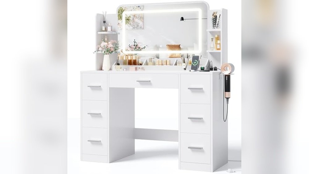 This vanity desk is best for those who want an all-in-one makeup station that combines lighting, storage, and charging capabilities. It removes the hassle of poor lighting and clutter, helping you focus on your beauty routine without interruptions.