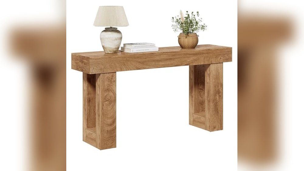 This table is ideal for those who want a minimalist design with a natural, rustic touch that fits various home styles. It removes the guesswork of finding a stable and spacious console that can hold everyday essentials without wobbling.