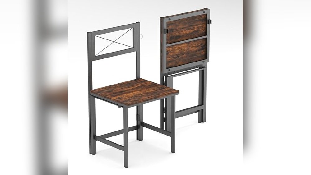 These folding chairs feature a rustic wood seat paired with a metal frame, ready to use straight from the box with no assembly needed. Their fold-flat design solves the common problem of dining chairs crowding small apartment spaces by offering easy storage.