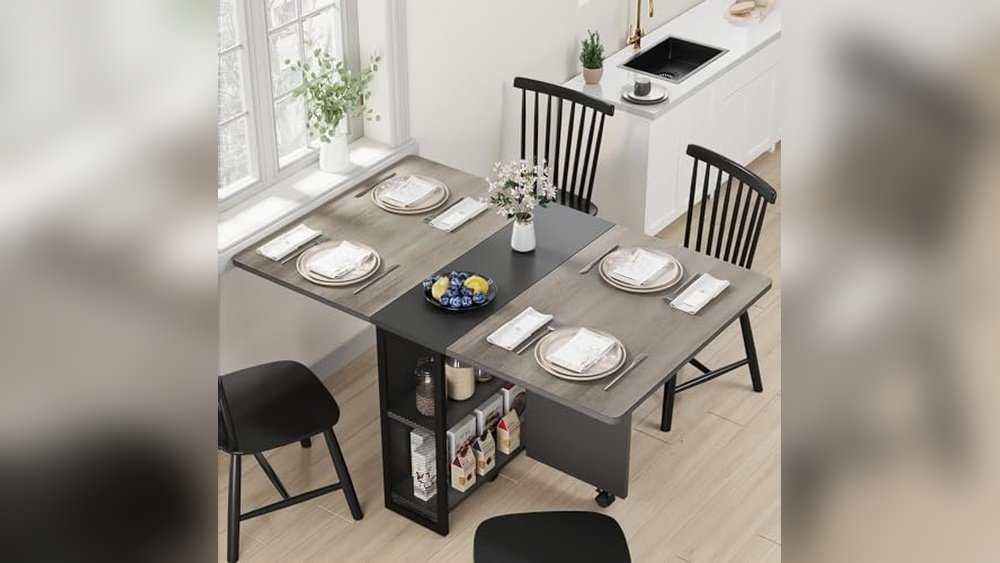 This Best Space-Saving Dining Table With Storage is designed to fit small spaces while providing practical storage and mobility.
