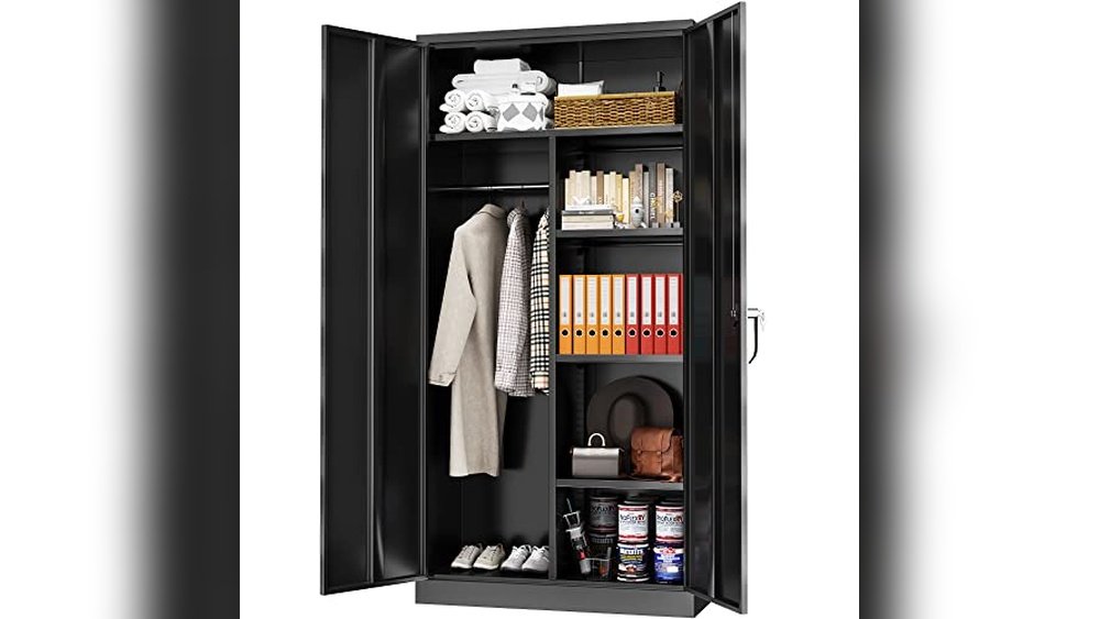 This steel wardrobe cabinet stands out for its solid construction and thoughtful features like adjustable shelves and magnetic closures. It solves the common problem of limited closet space by offering a secure and roomy alternative that fits in multiple rooms.