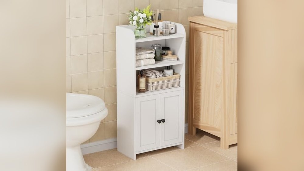 The Homhedy Small Bathroom Storage Cabinet is a freestanding unit designed to maximize storage in compact spaces. Its dimensions make it perfect for placement beside toilets or bathtubs, providing dedicated spots for toilet paper, towels, and toiletries. The cabinet also suits laundry rooms, helping keep essentials neatly organized.