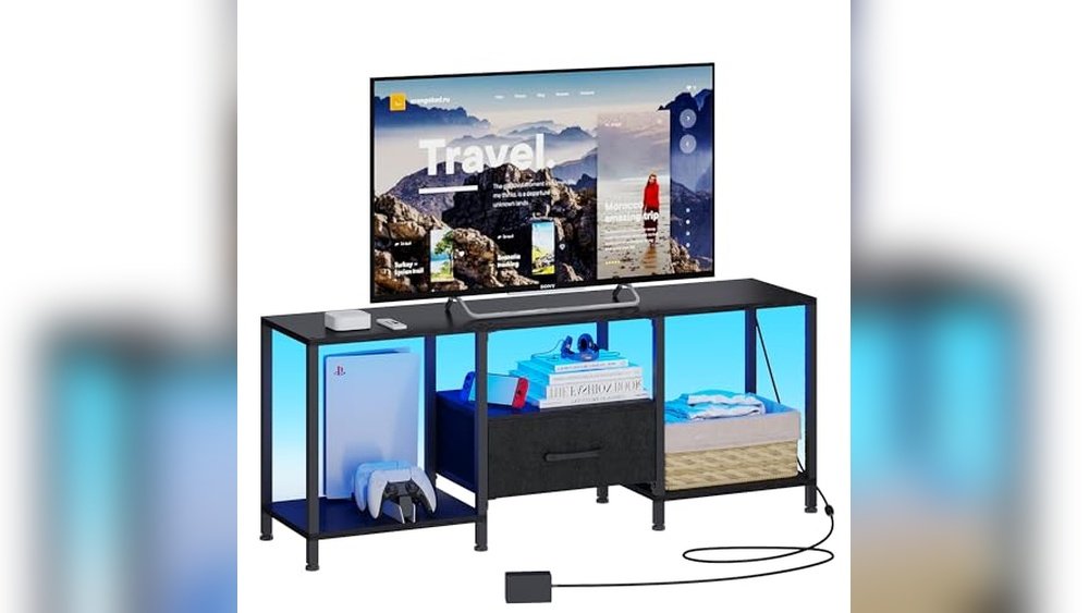 This TV stand is best for gamers or apartment dwellers looking to save space without sacrificing style or functionality. It removes the hassle of tangled cords with built-in outlets and simplifies organization through its drawers and shelves. For best results, measure your TV base width to ensure a perfect fit and avoid surprises.