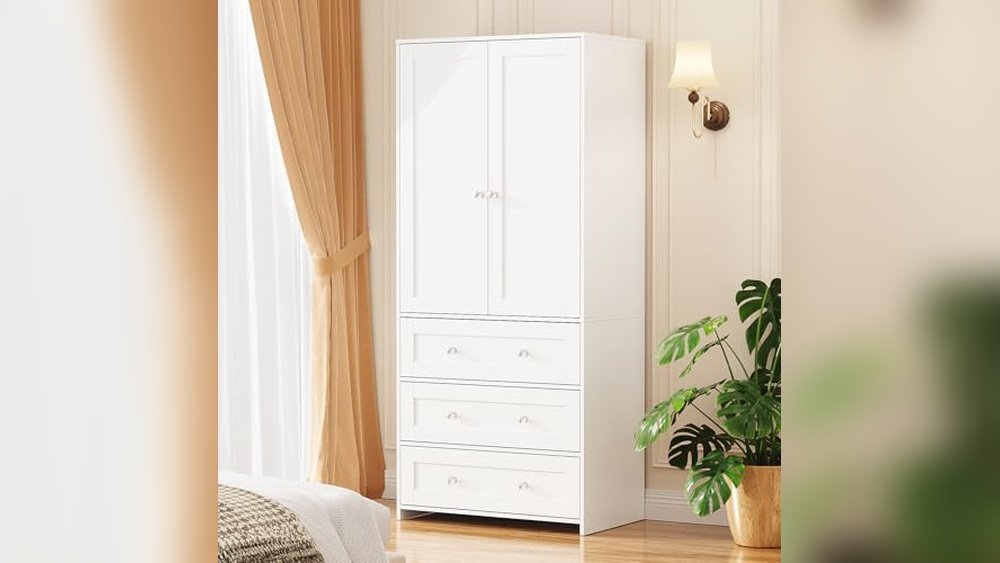 The VOWNER White Armoire Wardrobe is a practical choice among the Best Wardrobe options for those needing large capacity and elegant bedroom storage.