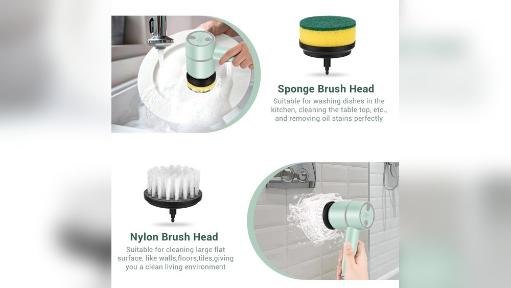 Electric spin scrubbers clean countertops quickly. They remove grease and food stains well. Use soft brush heads for delicate surfaces like granite or marble. Harder brushes fit ceramic or tile backsplashes. The scrubber reaches grout lines better than cloths.