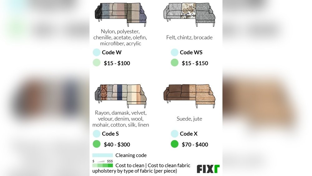 Fabric type impacts cleaning costs. Leather, suede, and velvet need special care. Synthetic materials usually cost less to clean. Natural fibers may require gentle, costly cleaning methods.